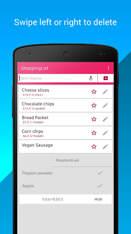 Apl ini mencadangkan item yang biasa dibeli semasa anda menaip, menjimatkan anda daripada menaip berulang.