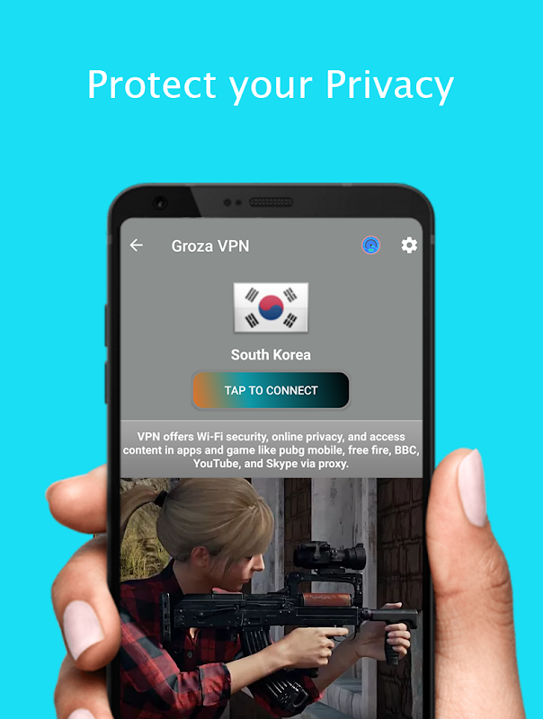 Groza VPN - Proxy For Web and Gamers like pubg Mobile Korea - WiFi hotspot security shield and Unlimited Bandwidth to use.