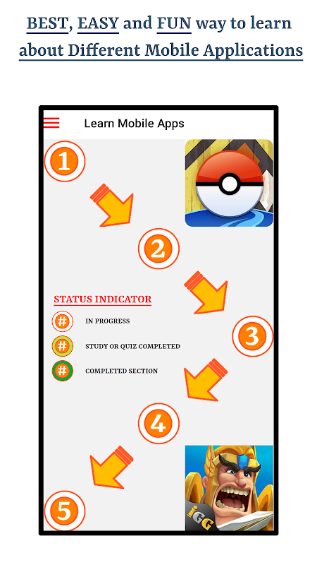 Apl ini merupakan sumber yang hebat untuk menghafal Aplikasi Mudah Alih Yang Paling Lazim Digunakan . Aplikasi ini direka bentuk untuk menjadikan pengguna sempurna mengenal pasti aplikasi mudah alih yang berbeza dengan mengkaji untuk masa yang sangat singkat. Fungsi audio dan penanda halaman tersedia di seluruh apl pada bab, bahagian, mod belajar dan mod kuiz.