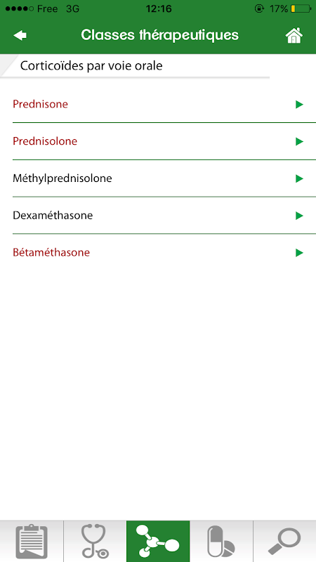 Les médicaments qui existent sous forme de générique sont identifiés en écrivant en rouge leur DCI et le nom commercial du médicament référent. Pour chaque classe de médicament, une pharmacologie rappelle :
