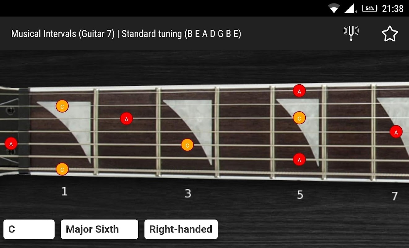 Ini adalah aplikasi percuma untuk belajar selang pada 7 str. leher gitar. Klik pada nota untuk bermain. Ia mempunyai jangka masa untuk standard dan beberapa drop menyelaraskan.