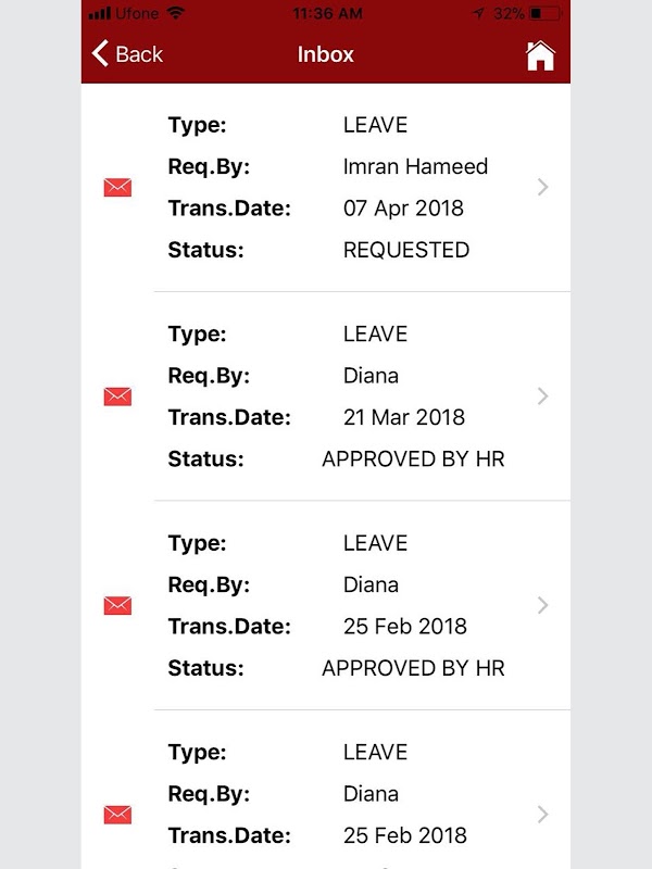 Status of submitted request - Access your inbox to track the status of your requests to your manager/HR.