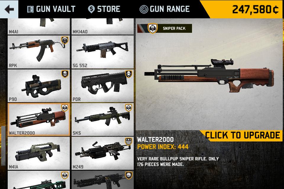 Berita baik tidak berakhir di sini. Ada lagi! Setiap senjata api datang dengan pilihan yang luas dari peningkatan. Semua senjata benar-benar disesuaikan! Tambah muncung dan laras upgrade, mount skop merah dot optik, melanjutkan klip majalah anda dan lampirkan saham selepas pasaran untuk melawan berundur. Ini akan sangat meningkatkan prestasi senapang anda dan membuat ia alat utama untuk menjatuhkan tukul.