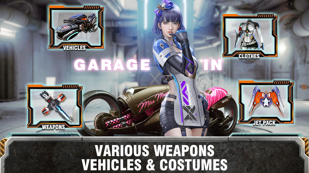 Kecuali senjata api, Motosikal dan jetpack yang hebat akan menjadikan pengembaraan anda lebih mudah. Pakaian bergaya juga disediakan. Dapatkan beberapa pakaian untuk menonjolkan watak anda daripada orang ramai.