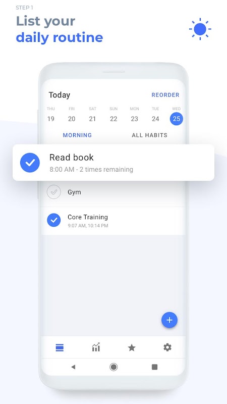Habitify Android groups your habits by times of the day: Morning, afternoon and evening. You can customize the time for each time of the day to suit your daily routine better.
