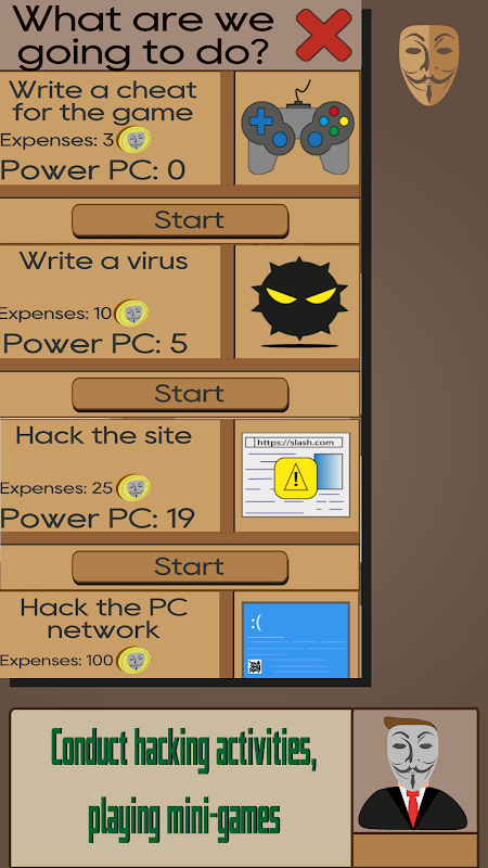 - Go out on hacking missions by playing games and get cash rewards and a reputation in the hacker community.