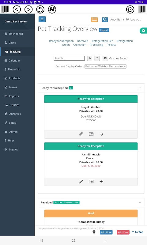 Penyelesaian Pengurusan Krematorium Halcyon (CMS Platinum) boleh disesuaikan dengan konfigurasi pembakaran mayat anda dan membolehkan anda mengurus sepenuhnya operasi pembakaran mayat anda. Ciri termasuk penjejakan badan melalui pengimbasan kod QR, pengurusan akaun pelanggan dan pengebilan, penjanaan borang dan laporan, kawalan inventori, pengelogan penggunaan peralatan dan penyelenggaraan, dan banyak lagi.