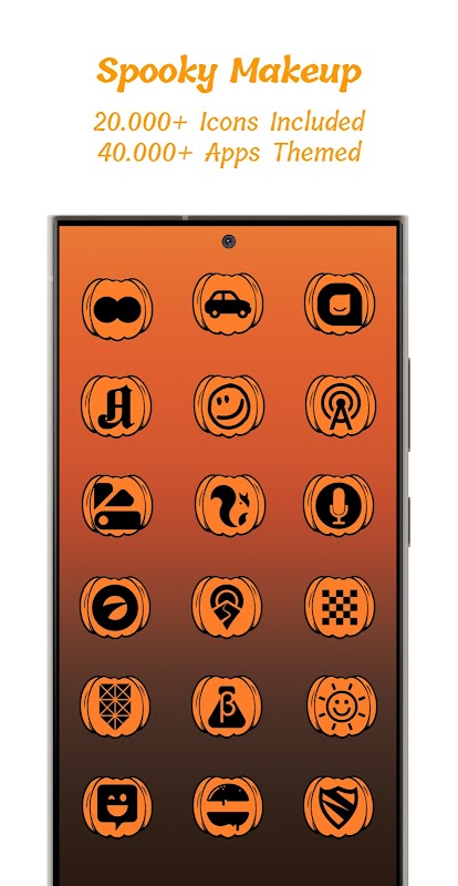 Setiap ikon direka dengan teliti sebagai reka bentuk berbentuk labu yang pasti menggembirakan. Ubah dan raikan Halloween dalam gaya menyeramkan!