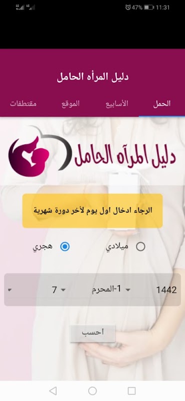 ✔️ حساب الحمل بالتاريخ الميلادي والهجري.