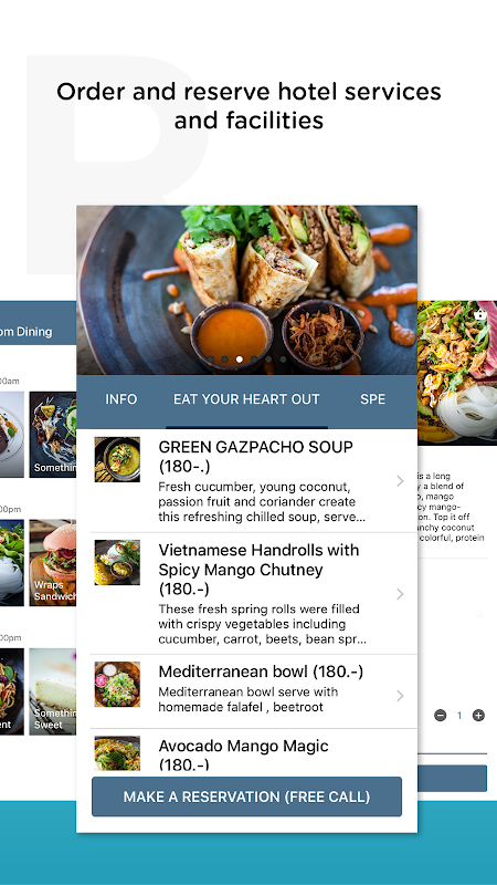 Ciri apl termasuk kemudahan dalaman hotel anda jika ia berdaftar dengan HandiGo, acara bulanan akan datang, tawaran dan promosi serta lawatan dan aktiviti tempatan.