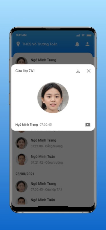 Ứng dụng dành cho phụ huynh xem lịch sử đến trường của học sinh trên các thiết bị thông minh của HANET Electronic Vietnam
