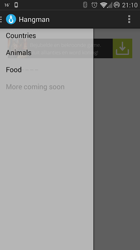 - Multilangual hangman (English, Dutch and German).