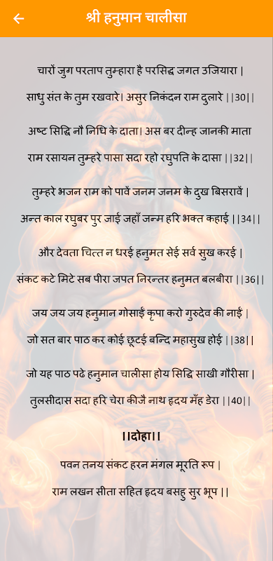 Aplikasi ini menyediakan kemudahan membaca lirik Hanuman Chalisa dalam bahasa Hindi, menjadikannya mudah untuk membaca, memahami dan menyanyi bersama-sama dengan lagu raya yang berkuasa.