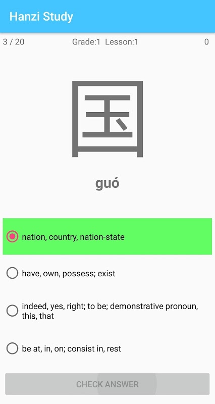 Hanzi disusun mengikut tahap HSK ke dalam pelajaran pelajaran yang boleh diurus.