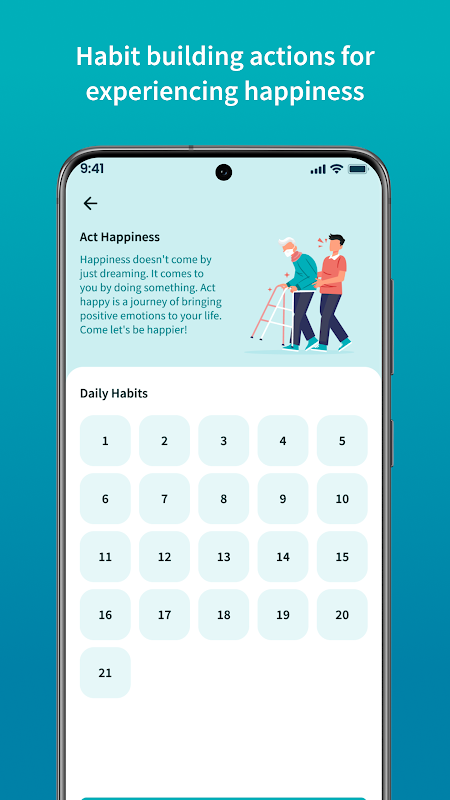 Happbit percuma untuk memuat turun dan akses tanpa had semua trek, kisah inspirasi, jurnal kesejahteraan dan menjejaki mood anda secara berkala. Setiap trek mengandungi tindakan yang mudah tetapi penting bagi anda untuk melihat lebih banyak aspek positif dalam kehidupan sehari-hari. Menaklukkan fikiran yang tertekan dan negatif dan membakar tenaga anda dengan pandangan positif.