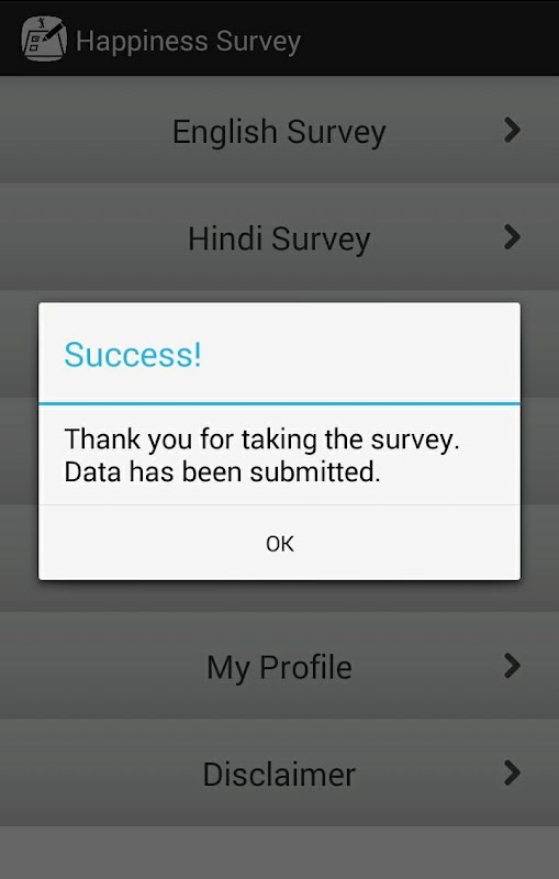 Happiness Survey is an app to allow users share about their happiness in life. The data shared via this app will be kept confidential. This app is for use of Art of Living Volunteers who would conduct an Happiness Survey in India.