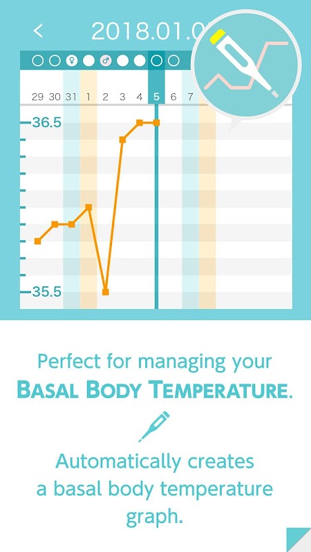 * Fungsi pengurusan suhu badan basal (BBT) terbina dalam. Menjana graf BBT secara automatik berdasarkan suhu badan input.