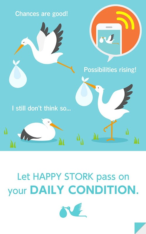 Happy Storkg membantu pasangan yang mengharapkan anak. Walaupun ramai wanita menjejaki dan menguruskan ovulasi dan hari subur mereka, mungkin sukar untuk memberitahu maklumat ini kepada pasangan lelaki. Ini boleh menyebabkan masalah masa dan penyelarasan pada hari tersebut.