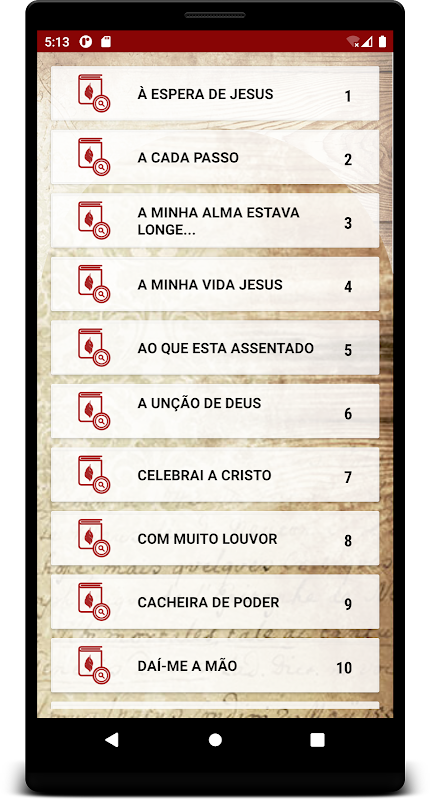 Dengan aplikasi ini, anda mendapat akses kepada 640 lagu pujian yang terdapat dalam Christian Harp dan koir api, serta kemungkinan menyenaraikan lagu raya dengan huruf pertama bait atau refrain (korus), seolah-olah anda bersama Harp yang dicetak , tanpa memerlukan sambungan internet dan percuma sepenuhnya!