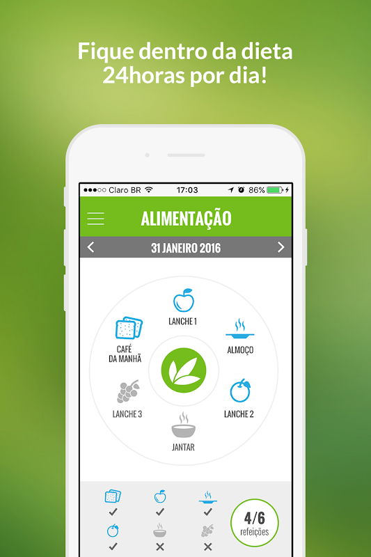 - ALERTAS: Receba alertas para você não esquecer de se hidratar e de se alimentar.
