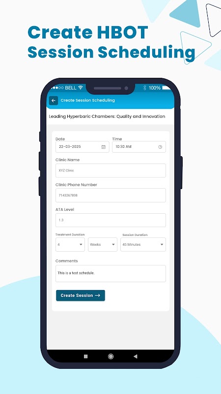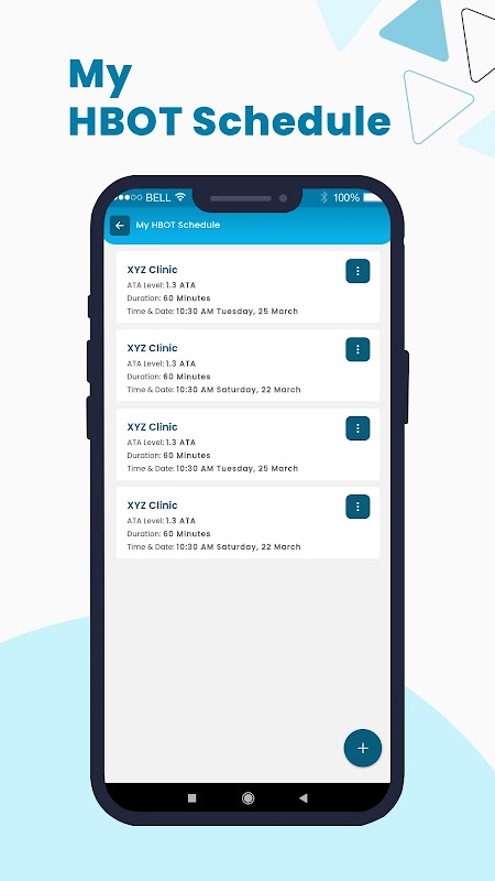 Jadualkan sesi HBOT anda dengan mudah dan simpan log terperinci rawatan anda. Aplikasi ini menyediakan kalendar intuitif di mana anda boleh menyediakan sesi berulang dan menjejaki kemajuan anda dari semasa ke semasa.