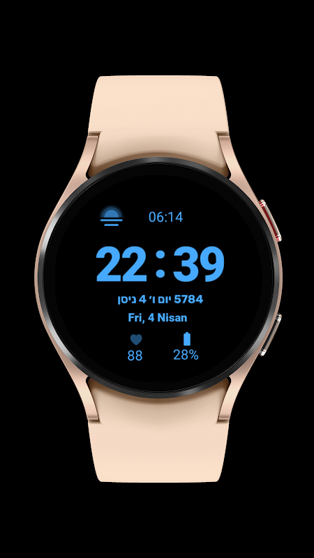 Muka Jam Digital Tarikh Hebrew untuk Wear OS
