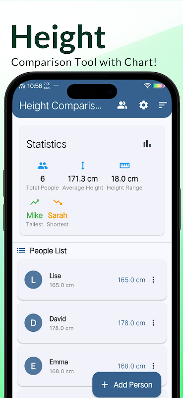📏 Perbandingan Ketinggian & Carta Langsung hikaku sitatter ialah alat muktamad untuk membandingkan ketinggian orang secara visual! Sama ada anda ingin tahu tentang perbezaan ketinggian anda dengan rakan, ingin membandingkan pertumbuhan anak anda atau hanya suka meneroka data ketinggian—apl ini menjadikannya mudah, menyeronokkan dan tepat.