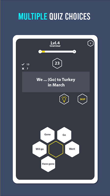If you are learning english, then this app right choice to improve your English grammar by Quiz.
