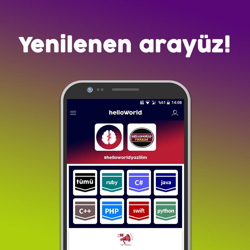 Selepas nota peribadi dan aplikasi pembelajaran yang menyeronokkan, aplikasi helloWorld kami dalam talian! helloworld; adalah aplikasi mudah alih berasaskan Android yang direka sebagai buku panduan pemaju. Selepas anda log masuk, anda boleh melihat mata pelajaran yang anda minati, dan anda boleh menyimpan topik yang anda minat dengan profil anda dengan mudah, makna Kod Kegemaran İçinde. Kami ingin anda masa yang menyenangkan dalam bidang "Soalan - Jawapan" di mana anda mempunyai soalan mengenai sektor perisian dan maklumat. Anda boleh menghantar komen dan cadangan anda kepada pasukan perisian helloWorld menerusi aplikasi.