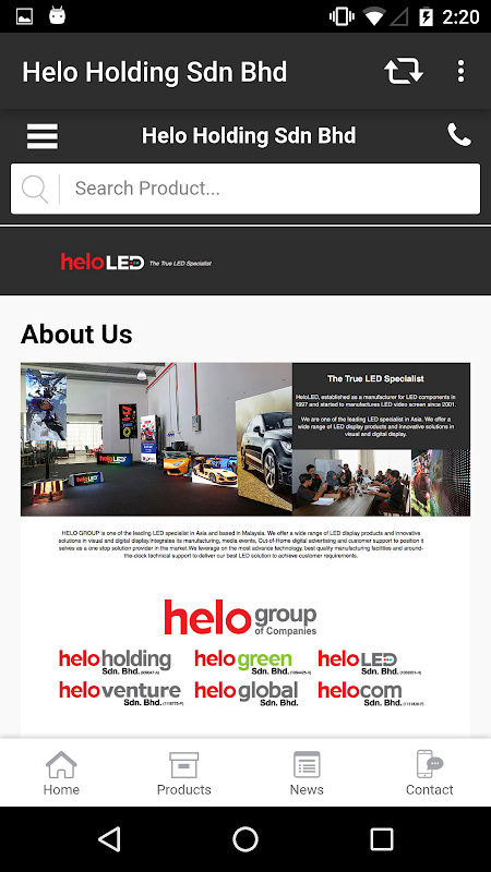 Helo Holding Sdn Bhd ditubuhkan sebagai pengeluar komponen LED pada tahun 1997 dan mula barang pembuatan LED skrin video sejak 2001. kilang dan bilik pameran kami terletak di Seri Kembangan, Selangor dan Johor Bahru (JB).