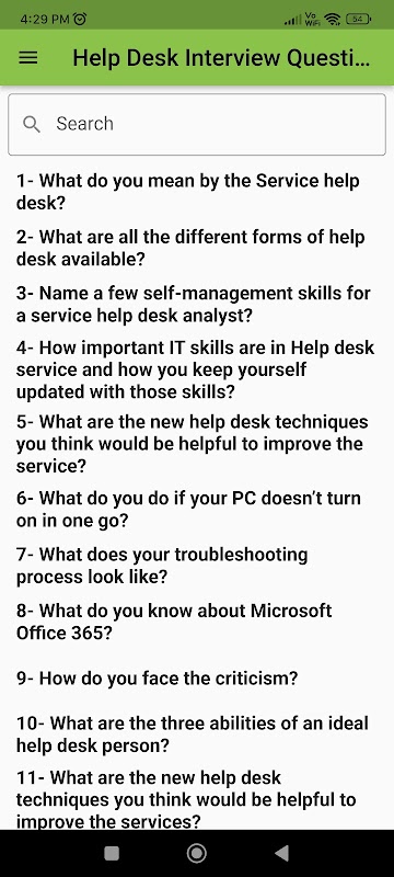 Soalan Temuduga Meja Bantuan: Bagi mereka yang berminat secara khusus dengan Meja Bantuan, apl kami menyertakan bahagian khusus dengan lebih 100+ soalan yang memfokuskan pada konsep Meja Bantuan. Tingkatkan pengetahuan anda dan tingkatkan keyakinan anda dalam senario temu duga Meja Bantuan.
