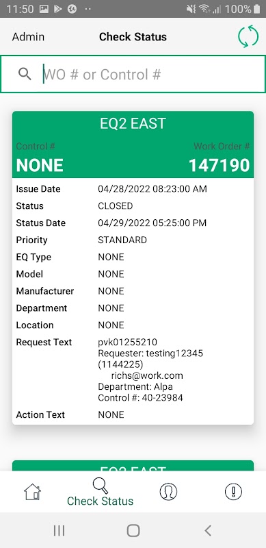Pakar klinik, jururawat atau mana-mana pengguna lain di hospital boleh menyerahkan permintaan kerja terus ke platform EQ2 HEMS Enterprise menggunakan aplikasi ini pada telefon mereka. Pengimbas kod bar secara automatik membuka perintah kerja apabila mengimbas item yang terjejas. Gambar boleh dilampirkan pada permintaan. Kemas kini status permintaan kerja dan penyiapan dihantar secara automatik kepada peminta dan ketua jabatan. Semasa menutup pesanan kerja, tinjauan kualiti dihantar melalui e-mel kepada peminta dan keputusan diringkaskan ke dalam laporan grafik hasil. Untuk kegunaan di mana-mana di hospital, termasuk apabila tidak disambungkan ke rangkaian. Apabila digunakan dalam mod luar talian, ia akan disegerakkan ke pangkalan data langsung kemudian sekali lagi dalam talian.
