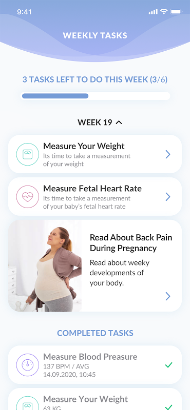 Aplikasi teman bersalin yang membolehkan ibu hamil mengesan, merekod dan menghantar maklumat kesihatan fizikal dan mental serta terus dididik dengan akses ke perpustakaan kandungan yang luas sepanjang perjalanan kehamilan mereka.
