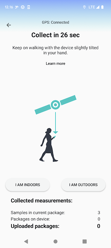 Ini digunakan apabila kawasan pengumpulan utama berada di luar bangunan. Aplikasi membimbing proses pengumpulan. Secara alternatif, anda boleh mengkonfigurasi aplikasi untuk meneruskan pengumpulan data apabila anda membiarkannya di latar belakang.