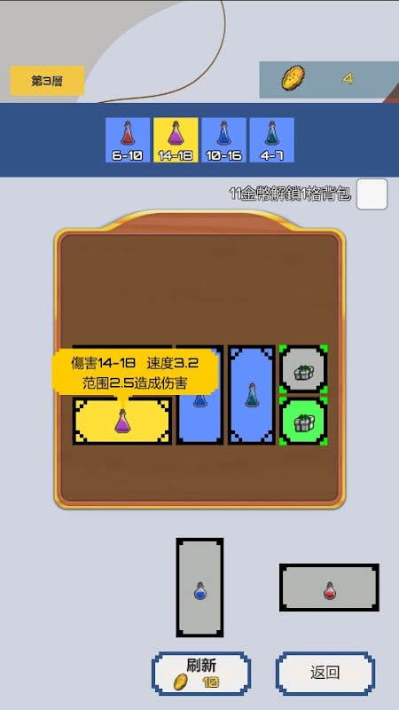 Anda perlu mengumpul syiling emas untuk mengumpul lebih banyak ramuan yang lebih berkuasa. Pergi bunuh musuh yang lebih kuat.