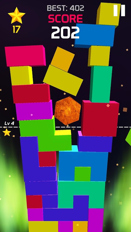 Destroy the blocks under the Hexagon by tap on it to increase score