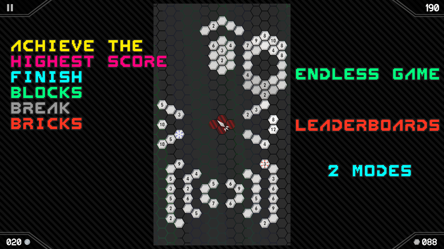 Tembak dari tengah, dan berhati-hati dengan batu bata berbentuk Heksagon yang semakin hampir setiap pusingan, jika anda melahu dan membiarkan mereka menyentuh zon bahaya anda, anda akan tewas serta-merta.