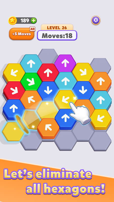 - Mudah Dimainkan: Ketik jubin heksagon yang ditandai dengan anak panah untuk mengalihkannya ke arah yang dinyatakan dan keluar dari timbunan. Peraturannya intuitif dan mudah diambil.