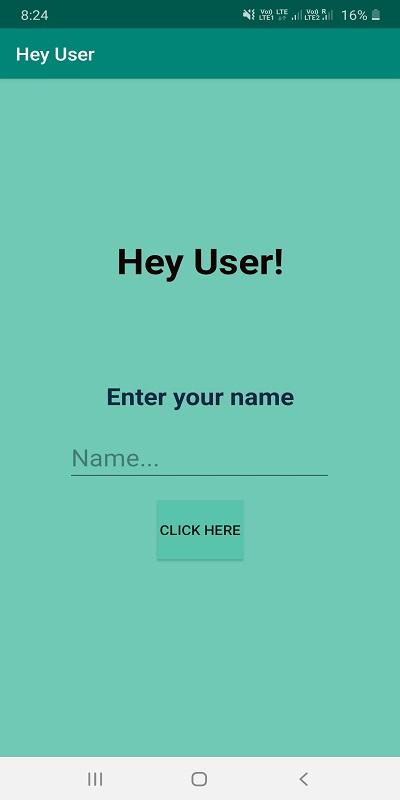 My first app, "Hey User" is a very basic app which allows user to interact a little with the app.