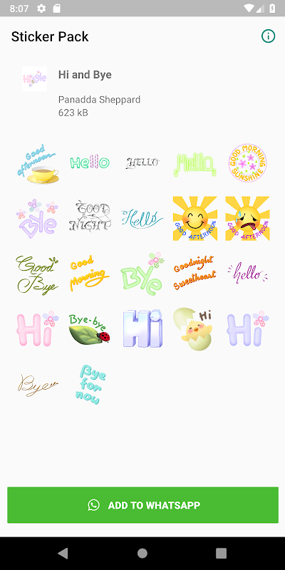 Maklumat APK Hi and Bye Sticker Pack by Pomelo Tree