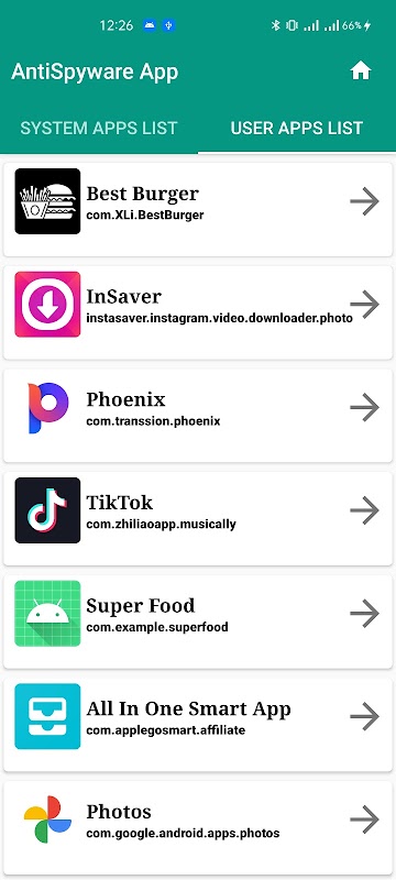 Aplikasi pengimbas aplikasi tersembunyi mengimbas semua aplikasi di dalam telefon bimbit anda dan membahagikannya kepada dua bahagian satu adalah maklumat aplikasi sistem dan yang kedua adalah maklumat aplikasi pemasangan pengguna. Dalam aplikasi sistem mereka, kami menunjukkan pemasangan aplikasi oleh sistem android yang disembunyikan kepada pengguna dan tidak ditunjukkan kepada pengguna kerana pengguna tidak dapat melakukan apa-apa dengan aplikasi tersebut.