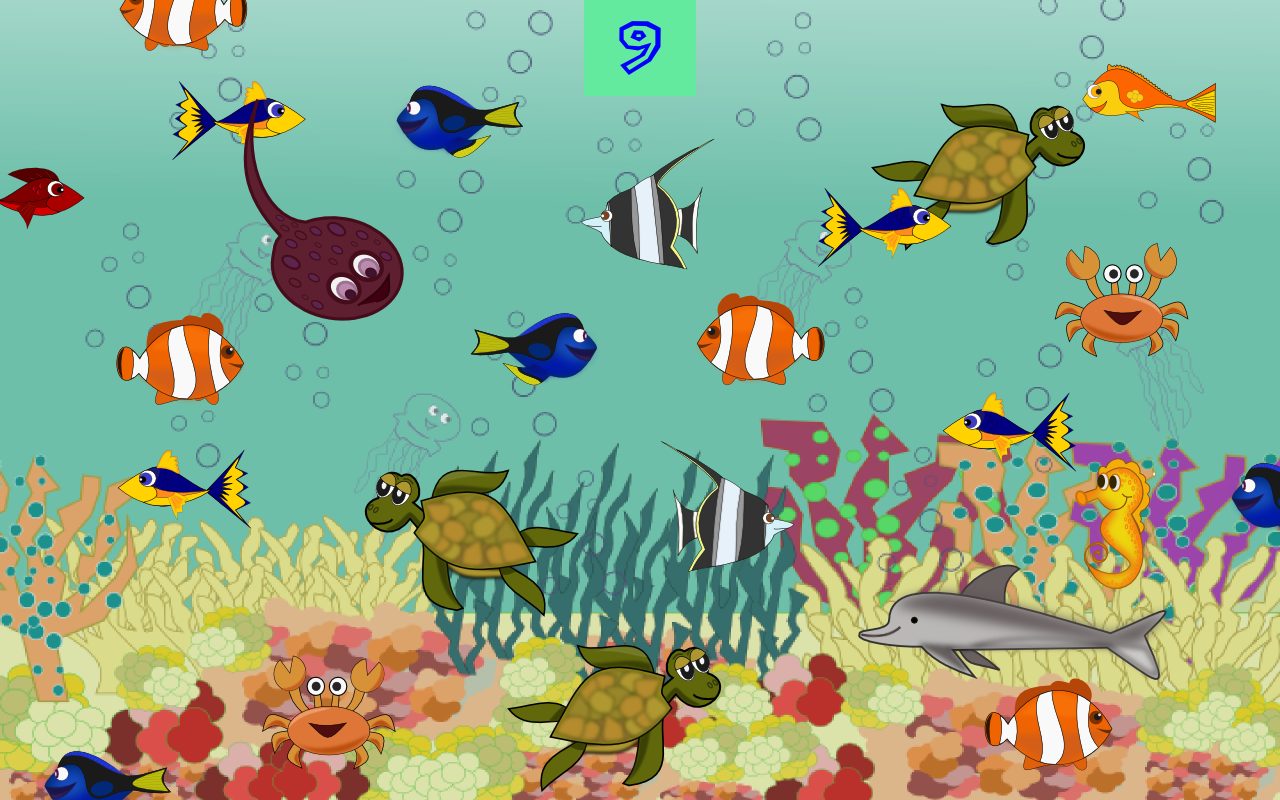 - Each level consists in a aquarium with a number of different swimming fishes.