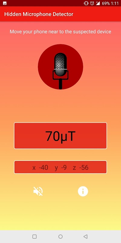 Apl Pengesan Mikrofon Tersembunyi menggunakan penderia magnet peranti anda untuk mengesan mikrofon tersembunyi di mana-mana untuk melindungi privasi anda dan menjadikan telefon anda seperti pengesan mikrofon Tersembunyi sebenar.