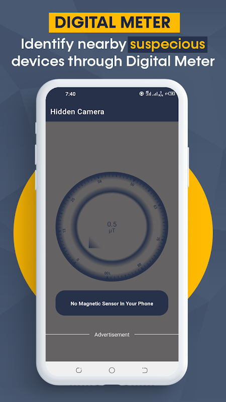 Hidden Camera Detector works best on the latest phones that detect cameras, suspicious devices, metals and ferromagnetic materials around you. If you are in doubt, worried and sensitive about spyware and suspicious hidden devices around you, you are easy to detect all of them with just one click. One-Click Hidden Camera detection allows you to use all features like detecting cameras using Graph Indicator, Digital Meter, Object Detector and other advanced features added to this application.