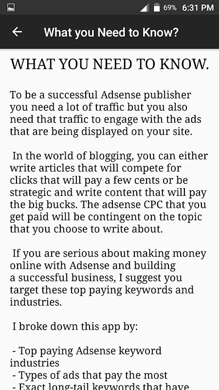 This application is to help all bloggers and developers find high paying keywords to build their applications and on their websites.