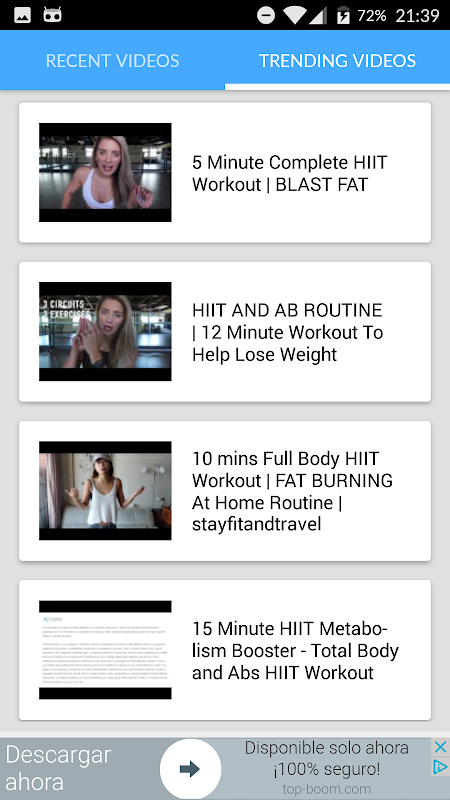 Find tones of HIIT aerobic exercises focused on fat loss routines and weight loss dancing, aerobics dance workout and Latin Aerobic Dance Workout. One of the best fitness apps of weight losing for girls. Either if you want to improve your weight loss fast with HIIT training sessions or aerobics workouts here you will find the best women routines.