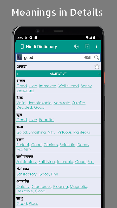 Memerlukan kamus percuma 100% offline yang boleh memberikan makna yang terperinci Hindi apa-apa perkataan Bahasa Inggeris?