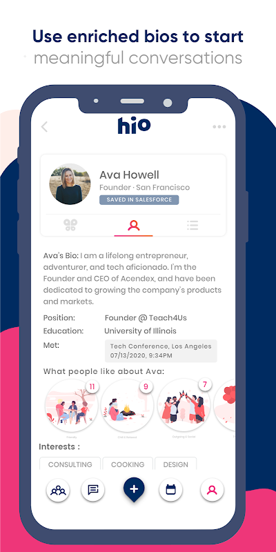 Hio lets you "hit it off" with anyone you meet, whether it's in-person or virtually! Hio’s event software and networking app make it easy to find & discover new people & events. Then, once you’ve made a connection, Hio’s incredible suite of networking tools allows you to stay in touch & build a meaningful relationship.