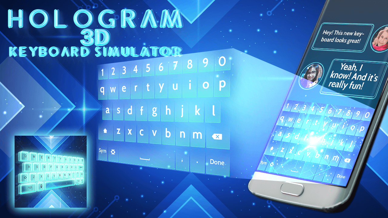 ⚡💎 If you are bored with all “keyboard themes” that you can find on the market - here comes something totally special for you! Try out our new 💎 Hologram 3D Keyboard Simulator 💎 with holographic skins, neon tech backgrounds and fashion fonts! ⚡💎