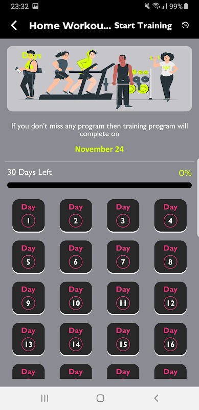 Setiap latihan ini disertakan dengan demonstrasi video berkualiti tinggi dan arahan teks terperinci. Selain itu, anda boleh menjejaki kemajuan latihan anda dalam skrin "Kalendar" untuk memantau kumpulan otot yang anda sasarkan dan tempoh latihan anda.
